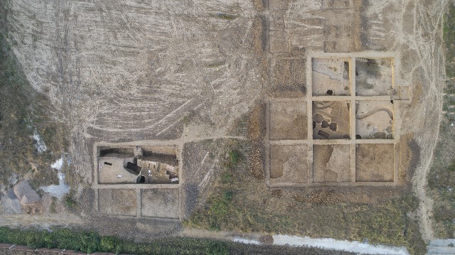 - 图为河南叶县余庄遗址发掘区航拍图(11月3日摄,无人机照片)。新华社发(河南省文物考古研究院供图)