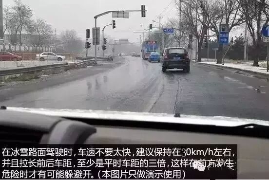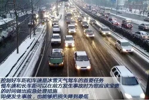 雨雪天气行驶中最常见的就是追尾和失控,所以控制车距和车速就显得尤为重要。在前方发生紧急情况时,较大的车距可以为您赢得充足的时间做出紧急处理措施。