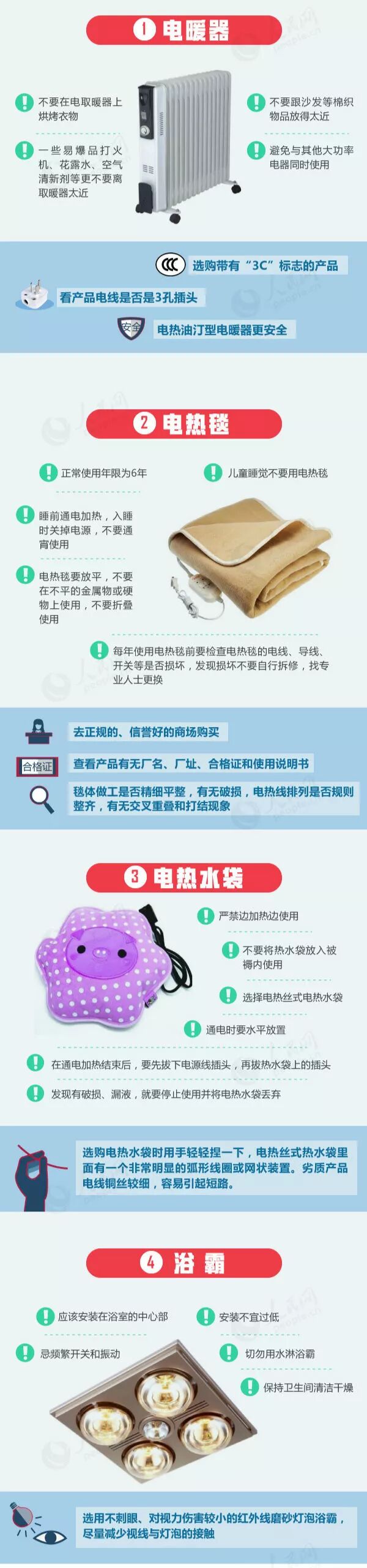 电烤炉、小太阳、电热毯、电热水袋
