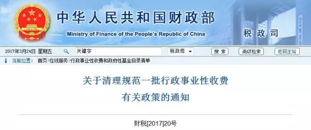 3月23日,财政部网站发布了《关于清理规范一批行政事业性收费有关政策的通知》,从2017年4月1日起,取消或停征41项中央设立的行政事业性收费,将商标注册收费标准降低50%!