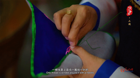 李发秀,土族,是国家级非物质文化遗产代表性项目土族盘绣的国家级代表性传承人。据她介绍,土族盘绣有一千多年的历史,其针法十分独特。上针盘,下针缝,一针二线同时操作,虽费工费料,但成品厚实华丽,经久耐用。