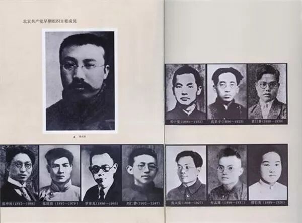 1918年6月,李大钊与王光祈等发起成立少年中国学会。毛泽东、恽代英、邓中夏、李达、蔡和森、赵世炎、张闻天等都参加过这一组织。此为部分会员合影,右三为李大钊