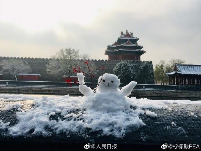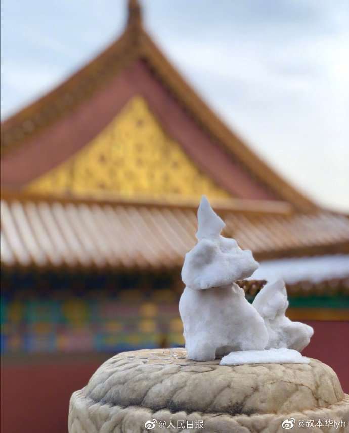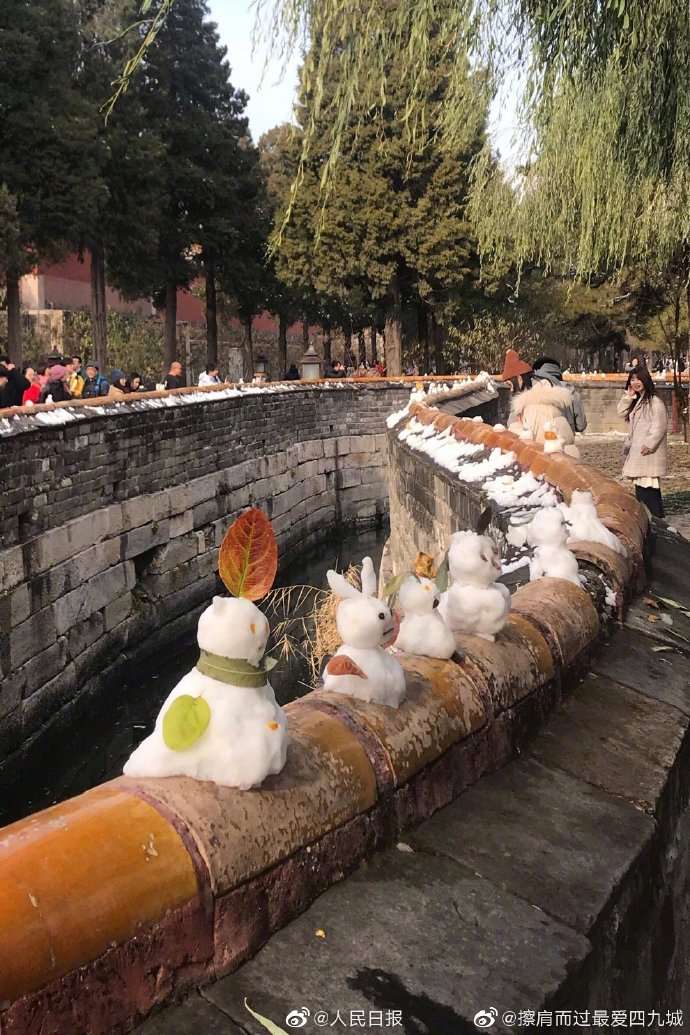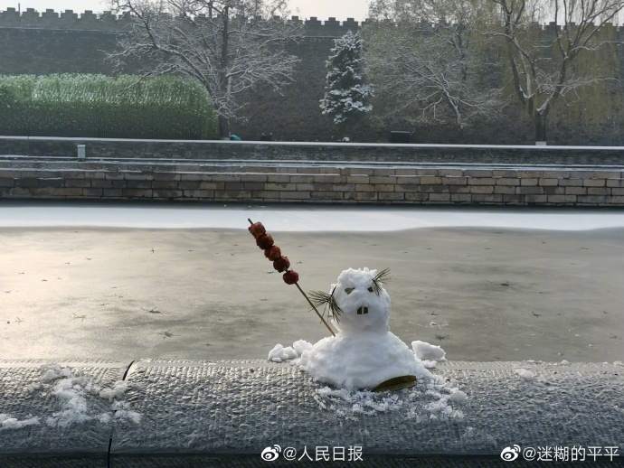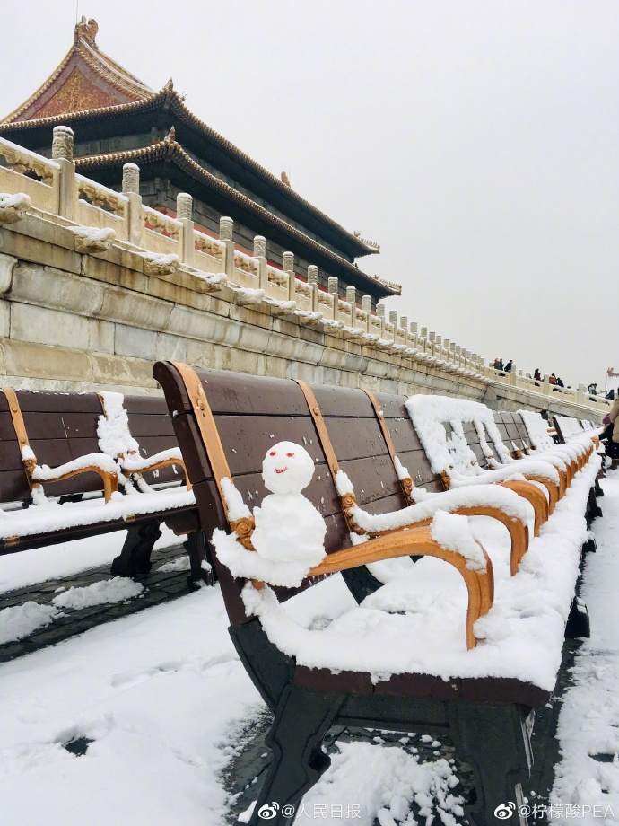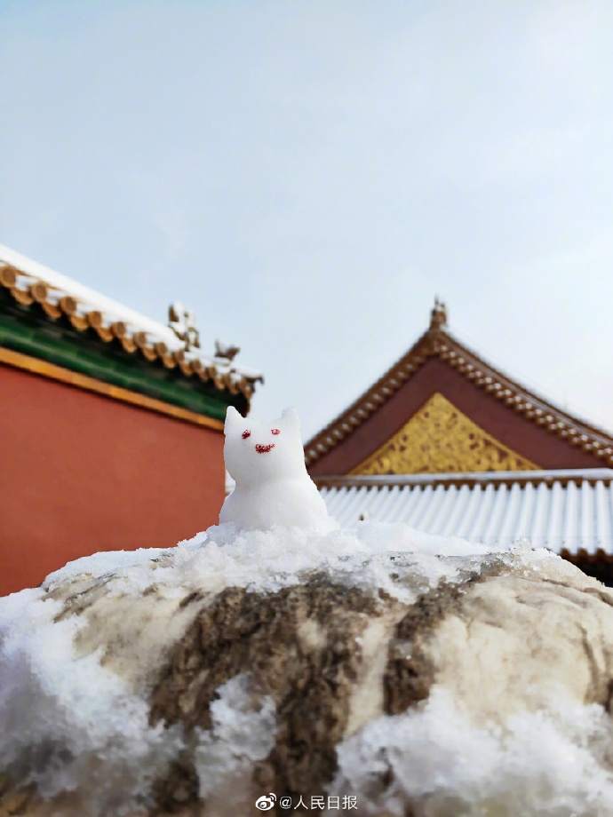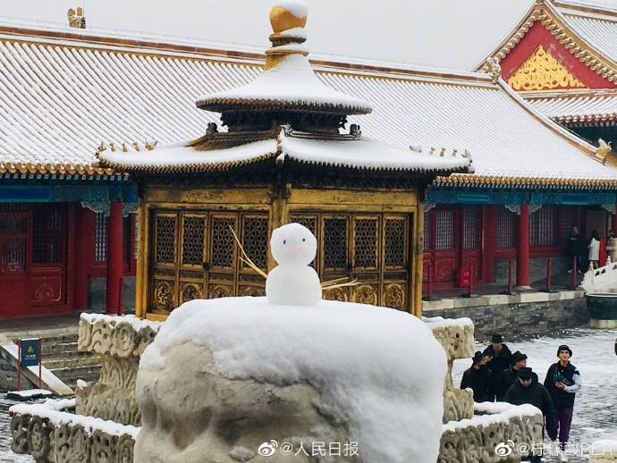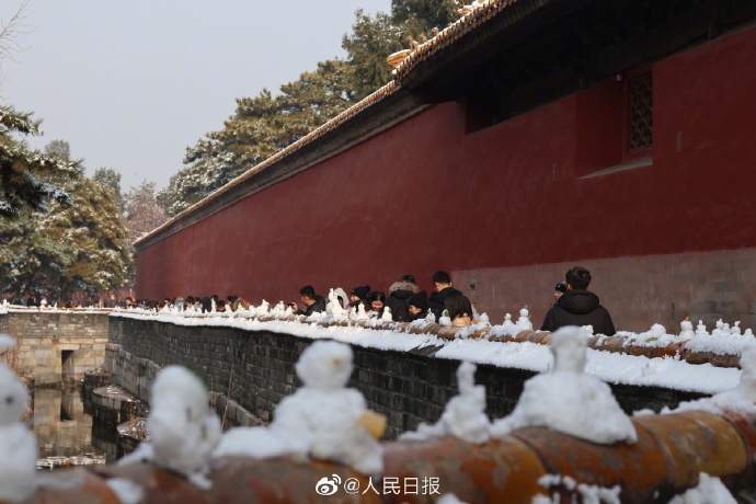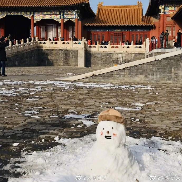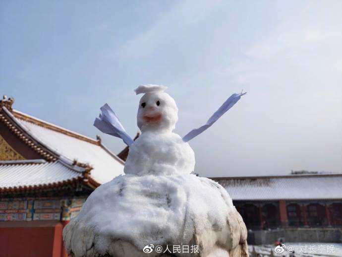 可爱 !你在故宫修文物,我在故宫堆雪人